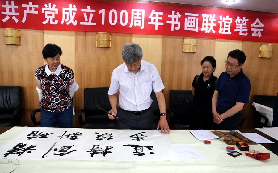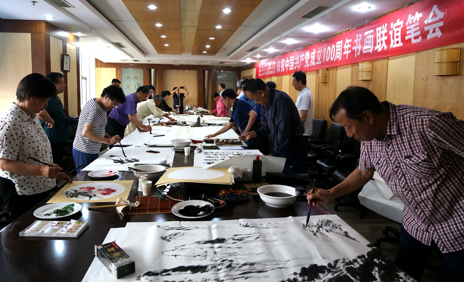 为庆祝中国共产党成立100周年,回顾党的奋斗历程,歌颂美好新时代,助力公司企业文化建设。6月24日,上海研霍智能科技有限公司、烟台市老年书画研究会、烟台市老干部志愿者协会共同举办“庆祝中国共产党成立100周年联谊书画笔会”。本次活动共有18位县处级退休老干部书画家参加。